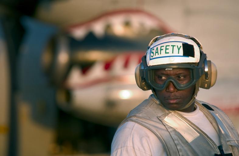 Keywords: US Navy 040218-N-5319A-006 Aviation Ordnanceman 1st Class Ernest Felder assigned to the Knighthawks of Strike Fighter Squadron One Three Six (VFA-136), keeps a watchful eye on flight deck crew.jpg en Red Sea Feb 18 2004 Aviation Ordnanceman 1st Class Ernest Felder assigned to the Knighthawks of Strike Fighter Squadron One Three Six VFA-136 keeps a watchful eye on flight deck crew aboard USS George Washington CVN 73 as a Safety Petty Officer during flight operations The Norfolk Va -based nuclear carrier is in the Red Sea on a scheduled deployment U S Navy photo by Photographer s Mate 1st Class Brien Aho RELEASED 2004-02-18 040218-N-5319A-006 Navy http //www navy mil/view_image asp id 12021 U S Navy photo by Photographer s Mate 1st Class Brien Aho PD-USGov-Military-Navy Aviation Ordnanceman Aboard USS George Washington CVN-73 Strike Fighter Squadron 136 United States Navy |
