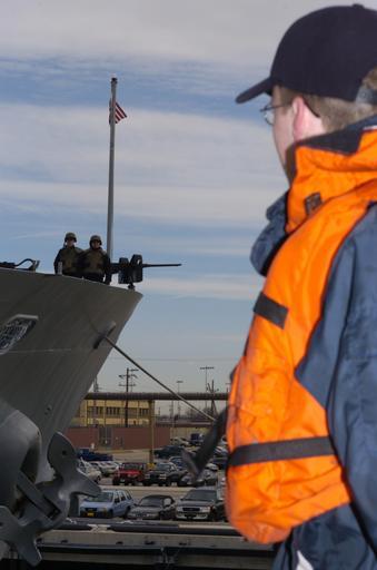 Keywords: US Navy 040219-N-1464F-006 Fire Controlman 3rd Class Jeremy Hodgin, of Lawton, Okla., waits for the signal to cast off the lines.jpg en Naval Station Norfolk Va Feb 19 2004 Fire Controlman 3rd Class Jeremy Hodgin of Lawton Okla waits for the signal to cast off the lines to send the guided missile cruiser USS Leyte Gulf CG 55 on deployment Leyte Gulf will join other elements operating with USS Wasp LHD 1 Expeditionary Strike Group ESG to conduct missions in support of the global war on terrorism U S Navy photo by Chief Journalist Dave Fliesen RELEASED 2004-02-19 040219-N-1464F-006 Navy http //www navy mil/view_image asp id 12030 U S Navy photo by Chief Journalist Dave Fliesen PD-USGov-Military-Navy Fire Controlman Naval Station Norfolk |
