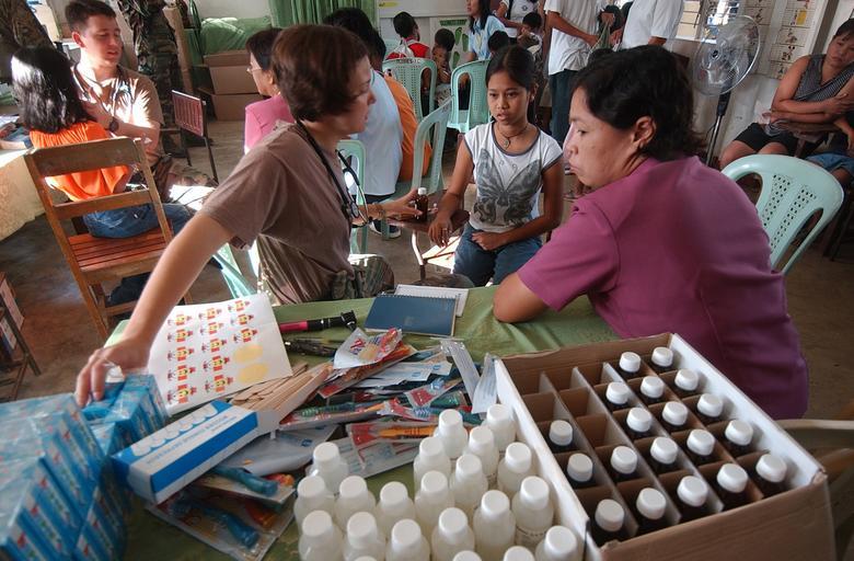 | Keywords: US Navy 040226-N-4142G-006 U.S. Army Capt. Sara Anderson examines a child in Bargangay San Miguel during the Medical Civic Action Program (MEDCAP) being conducted during Exercise Balikatan 2004.jpg en Puerto Princesa Palawan Republics of the Philippines RP Feb 26 2004 U S Army Capt Sara Anderson examines a child in Bargangay San Miguel during the Medical Civic Action Program MEDCAP being conducted during Exercise Balikatan 2004 The MEDCAPs are staffed by the medical doctors dentists nurses and veterinarians from both the RP and U S Armed Forces and provide much needed medical and dental services to the residents of eight Barangays; Mandaragat San Miguel Model Milagrosa Sta Lourdes Irawan Luzviminda and Tiniguiban Minor surgeries tooth extraction and medicines of various sorts are also distributed among the Barangay beneficiaries This exercise is only one of a number of on-going activities under the framework of RP-US military security cooperation Other elements include assistance with comprehensive defense reform security assistance modules for counter terrorism training helicopter night capability training intelligence fusion; subject matter expert exchanges; international military education and training programs advice and support for logistics engineering equipment maintenance and civil military operations U S Navy Photographer s Mate 2nd Class Felix Garza Jr RELEASED 2004-02-26 040226-N-4142G-006 Navy http //www navy mil/view_image asp id 12201 U S Navy photo PD-USGov-Military-Navy Images from US Navy location Puerto Princesa Philippines Balikatan 2004 Photographs by Felix Garza Jr |