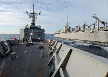 | Keywords: US Navy 040309-N-4374S-008 The Oliver Hazard Perry-class ship USS Taylor (FFG 50) conducts a replenishment at sea (RAS) with the fast combat support ship USS Seattle (AOE 3).jpg en At sea aboard USS Taylor FFG 50 Mar 9 2004 - The Oliver Hazard Perry-class ship USS Taylor FFG 50 conducts a replenishment at sea RAS with the fast combat support ship USS Seattle AOE 3 The guided missile frigate Taylor is part of the USS John F Kennedy Strike Group and is currently taking part in a Composite Training Unit Exercise COMTUEX COMPTUEX is an intermediate level exercise designed to forge the strike group into a cohesive fighting team and is a critical step in pre-deployment training During COMPTUEX more than a dozen ships and Carrier Air Wing Seventeen CVW-17 embarked on Kennedy conducted war game exercises using training ranges along the East Coast of the U S and the Gulf of Mexico The exercise took advantage of existing ranges under the Navy s comprehensive Training Resource Strategy TRS These ranges offer training facilities and realistic simulations better preparing U S Navy ships and Sailors to participate in the Global War on Terrorism U S Navy photo by Photographer's Mate 2nd Class Michael Sandberg RELEASED 2004-03-09 040309-N-4374S-008 Navy http //www navy mil/view_image asp id 12770 U S Navy photo by Photographer's Mate 2nd Class Michael Sandberg PD-USGov-Military-Navy Aboard USS Taylor FFG-50 Underway replenishment |