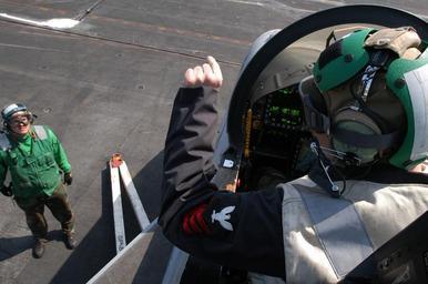 | Keywords: US Navy 040321-N-5781F-004 Aviation Electronics Technicians check Global Positioning Systems (GPS) in an F-A-18F Super Hornet assigned to the Diamondbacks of Strike Fighter Squadron One Zero Two (VFA-102) on the flight deck of.jpg en 7th Fleet Area of Responsibility AOR Mar 21 2004 - Aviation Electronics Technicians check Global Positioning Systems GPS in an F/A-18F Super Hornet assigned to the Diamondbacks of Strike Fighter Squadron One Zero Two VFA-102 on the flight deck of the aircraft carrier USS Kitty Hawk CV 63 The F/A-18F Super Hornet provides the Carrier Strike Group CSG with a strike fighter that has significant growth potential and increased range endurance and ordnance carrying capabilities Kitty Hawk is currently underway in the 7th Fleet area of responsibility AOR and is the U S Navy s only permanently forward-deployed aircraft carrier operating from Yokosuka Japan U S Navy photo by Photographer s Mate Airman Bo J Flannigan RELEASED 2004-03-21 040321-N-5781F-004 Navy http //www navy mil/view_image asp id 12865 U S Navy photo by Photographer s Mate Airman Bo J Flannigan PD-USGov-Military-Navy F/A-18F Super Hornet Flight deck of USS Kitty Hawk CV-63 Strike Fighter Squadron 27 United States Navy Strike Fighter Squadron 102 United States Navy |