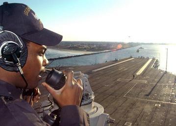 | Keywords: US Navy 040322-N-8704K-001 Quartermaster 3rd Class Ryan Young speaks into a sound powered telephone aboard the aircraft carrier USS John F. Kennedy (CV 67) while on watch, upon entering the port at Naval Station Mayport, Fla.jpg en Navel Station Mayport Fla Mar 22 2004 - Quartermaster 3rd Class Ryan Young speaks into a sound powered telephone aboard the aircraft carrier USS John F Kennedy CV 67 while on watch upon entering the port at Naval Station Mayport Fla after completing a Composite Training Unit Exercise COMTUEX in the Gulf of Mexico COMPTUEX is an intermediate level exercise designed to forge the strike group into a cohesive fighting team and is a critical step in pre-deployment training During COMPTUEX more than a dozen ships and Carrier Air Wing Seventeen CVW-17 embarked on Kennedy conducted war game exercises using training ranges along the East Coast of the U S and the Gulf of Mexico The exercise took advantage of existing ranges under the Navy s comprehensive Training Resource Strategy TRS These ranges offer training facilities and realistic simulations better preparing U S Navy ships and Sailors to participate in the Global War on Terrorism U S Navy photo by Photographer s Mate 3rd Class Joshua Karsten RELEASED 2004-03-22 040322-N-8704K-001 Navy http //www navy mil/view_image asp id 12841 U S Navy photo by Photographer s Mate 3rd Class Joshua Karsten PD-USGov-Military-Navy Naval Station Mayport People of the United States Navy with sound-powered telephones |
