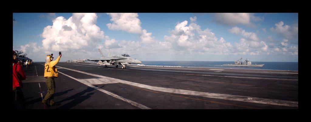 Keywords: US Navy 040423-N-9851B-127 An F-A-18C Hornet makes an arrested landing on the flight deck of USS Harry S. Truman (CVN 75) as the guided missile cruiser USS Monterey (CG 61) pulls near to observe.jpg en Atlantic Coast Apr 23 2004 - An F/A-18C Hornet assigned to the Gunslingers of Strike Fighter Squadron One Zero Five VFA-105 makes an arrested landing on the flight deck of USS Harry S Truman CVN 75 as the guided missile cruiser USS Monterey CG 61 pulls near to observe This image is comprised of two photos to form a panoramic view Truman is currently undergoing her Tailored Ship's Training Availability TSTA exercise off the Atlantic Coast U S Navy photo by Photographer's Mate 2nd Class John L Beeman RELEASED 2004-04-23 040423-N-9851B-127 Navy http //www navy mil/view_image asp id 13602 U S Navy photo by Photographer's Mate 2nd Class John L Beeman PD-USGov-Military-Navy Aboard USS Monterey CG-61 Strike Fighter Squadron 105 United States Navy |