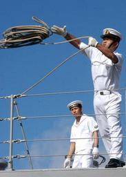 | Keywords: US Navy 040504-N-3019M-001 A Japanese Sailor aboard the Japanese Maritime Self-Defense Force (JMSDF) destroyer JDS Hamagiri (DD 155) throws a line to the pier.jpg JDS Hamagiri DD 155 throws a line to the pier as the ship docks in Pearl Harbor Three ships assigned to the JMSDF arrived in Pearl Harbor for a three-day port visit to broaden mutual understanding and friendship between the countries Crew members assigned to the ships will lay wreaths at the USS Arizona Memorial Makiki Japanese Naval Graveyard and the National Memorial Cemetery of the Pacific U S Navy photo by Journalist Seaman Ryan C McGinley RELEASED 2004-05-04 040504-N-3019M-001 Navy http //www navy mil/view_image asp id 13865 U S Navy photo by Journalist Seaman Ryan C McGinley PD-USGov-Military-Navy JS Hamagiri DD-155 People of the JMSDF Foreign warships at Pearl Harbor National Memorial Cemetery of the Pacific |