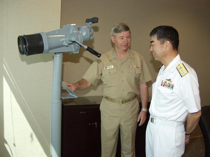| Keywords: US Navy 040517-N-3925A-004 Rear Adm. Yukinori Togo, Commander Japanese Maritime Self Defense Force (JMSDF) Training Squadron, right, meets with Vice Adm. Mike McCabe, Commander Third Fleet.jpg en San Diego Calif May 17 2004 - Rear Adm Yukinori Togo Commander Japanese Maritime Self Defense Force JMSDF Training Squadron right meets with Vice Adm Mike McCabe Commander Third Fleet to thank him for supporting his transit from Pearl Harbor to San Diego The support included underway replenishments UNREPS and passing exercises PASSEX between the three Japanese ships in Rear Adm Togo s training squadron and American ships U S Navy photo by Photographer's Mate 2nd Class Grant P Ammon RELEASED 2004-05-17 040517-N-3925A-004 Navy http //www navy mil/view_image asp id 14201 U S Navy photo by Photographer's Mate 2nd Class Grant P Ammon International guests at Naval Base San Diego Admirals of the JMSDF Training Squadron JMSDF PD-USGov-Military-Navy |