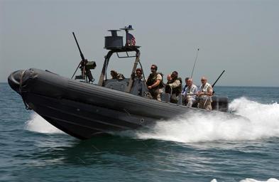 | Keywords: US Navy 040520-N-7586B-057 Riding in a Rigid Hull Inflateable Boat (RHIB), Secretary of the Navy, Gordon R. England, is transported from the Al Basrah Oil Terminal (ABOT) to the coastal patrol ship USS Chinook (PC 9).jpg  en Arabian Gulf May 20 2004 - Riding in a Rigid Hull Inflateable Boat RHIB Secretary of the Navy Gordon R England is transported from the Al Basrah Oil Terminal ABOT to the coastal patrol ship USS Chinook PC 9 by members assigned to Special Boat Team Twelve SBT-12 Secretary England expressed his support during a scheduled tour of deployed locations speaking with the troops stationed in the U S Central Command's Area of Responsibility U S Navy photo by Photographer's Mate 1st Class Bart A Bauer RELEASED 2004-05-20 040520-N-7586B-057 Navy http //www navy mil/view_image asp id 14479 U S Navy photo by Photographer's Mate 1st Class Bart A Bauer PD-USGov-Military-Navy Al Basrah Oil Terminal USS Chinook PC-9 Rigid-hulled inflatable boats of US Navy Gordon R England Special Warfare Combatant-craft Crewmen Basra People of Basra Special Boat Team 12 |