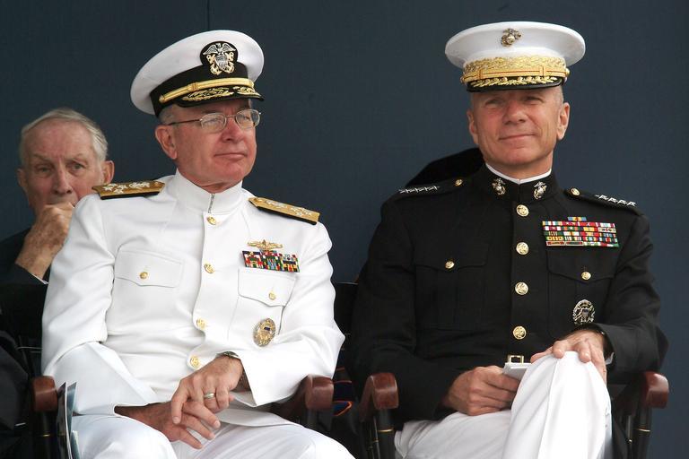 Keywords: US Navy 040528-N-2383B-107 Chief of Naval Operations, Adm. Vern Clark and Commandant of the Marine Corps, Gen. Michael W. Hagee look on during the U.S. Naval Academy Class of 2004 Graduation and Commissioning Ceremony.jpg en U S Naval Academy May 28 2004 - Chief of Naval Operations Adm Vern Clark and Commandant of the Marine Corps Gen Michael W Hagee look on during the U S Naval Academy Class of 2004 Graduation and Commissioning Ceremony Nine hundred-ninety Midshipmen graduated from the U S Naval Academy and became commissioned officers in the U S Military The men and women of the graduating class were sworn into the Navy as Ensigns or into the Marine Corps as Second Lieutenants U S Navy photo by Chief Photographer's Mate Johnny Bivera RELEASED 2004-05-28 040528-N-2383B-107 Navy http //www navy mil/view_image asp id 14516 U S Navy photo by Chief Photographer's Mate Johnny Bivera PD-USGov-Military-Navy Vern Clark Michael W Hagee Graduation and Commissioning Ceremony May 28 2004 Taken with Fujifilm FinePix S2 Pro |