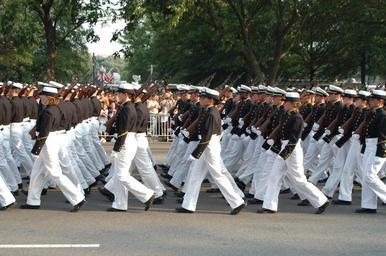 | Keywords: US Navy 040609-A-3085H-065 U.S. Navy Midshipmen from the U.S. Naval Academy march in the precession, in front of the caisson carrying the flag draped casket of former President Ronald Reagan.jpg en Washington D C June 9 2004 - U S Navy Midshipmen from the U S Naval Academy march in the precession in front of the caisson carrying the flag draped casket of former President Ronald Reagan The Midshipmen marched down Constitution Avenue to the U S Capital where the former President will lie in state in the Capitol Rotunda for public viewing through Friday A state funeral will be conducted late Friday morning at the Washington National Cathedral where President Bush will give the eulogy U S Army photo by Staff Sgt Robert Hyatt RELEASED 2004-06-09 040609-A-3085H-065 Navy http //www navy mil/view_image asp id 15387 U S Navy photo PD-USGov-Military-Navy People of the United States Navy Death and state funeral of Ronald Reagan |
