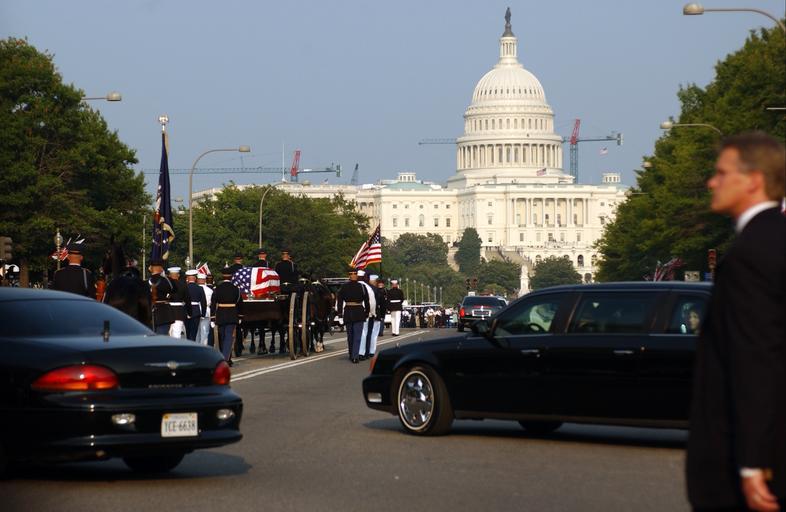 Keywords: US Navy 040609-N-1810F-015 Former First-Lady Nancy Reagan follows the horse-drawn caisson carrying former President Ronald Reagan's flag-draped casket.jpg en Washington D C Jun 9 2004 - Former First-Lady Nancy Reagan follows the horse-drawn caisson carrying former President Ronald Reagan's flag-draped casket as it proceeds to the Nation's Capitol where he will lie in state in the Capitol Rotunda A state funeral will be conducted late Friday morning at the Washington National Cathedral where President Bush will give the eulogy On Friday June 11 President Reagan's body will return to Calif for a private burial service U S Navy photo by Photographer's Mate 3rd Class Todd Frantom RELEASED 2004-06-09 040609-N-1810F-015 Navy http //www navy mil/view_image asp id 14793 U S Navy photo by Photographer's Mate 3rd Class Todd Frantom PD-USGov-Military-Navy Death and state funeral of Ronald Reagan People of the United States Navy Events at the United States Capitol Pictures by Mass Communication Specialist Todd Frantom
