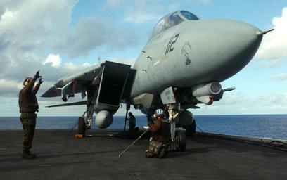 | Keywords: US Navy 040610-N-0382O-003 A plane captain assigned to the Swordsmen of Fighter Squadron Three Two (VF-32) instructs the pilot to remove his hands from the flight controls as a final checker inspects the tailhook of the F-14B T.jpg en Atlantic Ocean June 10 2004 A plane captain assigned to the Swordsmen of Fighter Squadron 32 VF-32 instructs the pilot to remove his hands from the flight controls as a final checker inspects the tailhook of the F-14B Tomcat Truman is one of seven aircraft carriers involved in Summer Pulse 2004 Summer Pulse 2004 is the simultaneous deployment of seven aircraft carrier strike groups CSGs demonstrating the ability of the Navy to provide credible combat power across the globe in five theaters with other U S allied and coalition military forces Summer Pulse 2004 is the Navy s first deployment under its new Fleet Response Plan FRP U S Navy photo by Photographer s Mate 3rd Class Justin S Osborne RELEASED For more information go to <a href http //www cffc navy mil/summerpulse04 htm Target _BLANK >www cffc navy mil/summerpulse04 htm</a> 2004-06-10 040610-N-0382O-003 Navy http //www navy mil/view_image asp id 15055 U S Navy photo by Photographer s Mate 3rd Class Justin S Osborne PD-USGov-Military-Navy F-14B Tomcat on flight decks Fighter Squadron 32 United States Navy USS Harry S Truman CVN-75 flight deck |