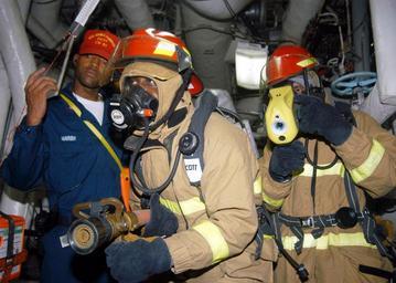 | Keywords: US Navy 040612-N-2591H-002 Damage Control Training Team (DCTT) member Hospital Corpsman 2nd Class Renville Marsh observes the nozzle man as the On-Scene Leader uses the Naval Firefighter Thermal Imager.jpg en Atlantic Ocean June 12 2004 - Damage Control Training Team DCTT member Hospital Corpsman 2nd Class Renville Marsh observes the nozzle man as the On-Scene Leader uses the Naval Firefighter Thermal Imager NFTI to scan the area during a simulated fire in the number two main machinery room Kennedy is one of seven aircraft carriers involved in the Summer Pulse 2004 Exercise Summer Pulse 2004 is the simultaneous deployment of seven aircraft strike groups CSGs demonstrating the ability of the Navy to provide credible combat across the globe in five theaters with other U S allied and coalition military forces Summer Pulse is the Navy s first deployment under its new Fleet Response Plan FRP U S Navy photo by Photographer s Mate 3rd Class William Heimbuch II RELEASED For more information go to <a href http //www cffc navy mil/summerpulse04 htm Target _BLANK >www cffc navy mil/summerpulse04 htm</a> 2004-06-12 040612-N-2591H-002 Navy http //www navy mil/view_image asp id 14928 U S Navy photo by Photographer s Mate 3rd Class William Heimbuch II PD-USGov-Military-Navy ISG K-90 Talisman |