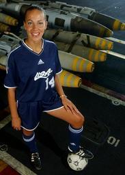 | Keywords: US Navy 040612-N-7781D-102 Airman Apprentice Jamie Klemmer assigned to the Weapons Department aboard the Nimitz-class aircraft carrier USS Harry S. Truman (CVN 75).jpg en Atlantic Ocean June 12 2004 - Airman Apprentice Jamie Klemmer assigned to the Weapons Department aboard the Nimitz-class aircraft carrier USS Harry S Truman CVN 75 stands with a soccer ball underfoot Klemmer has been selected as one of eighteen women in the military to play on the U S Armed Forces Soccer Team U S Navy photo by Photographer s Mate 2nd Class Andrea Decanini RELEASED 2004-06-12 040612-N-7781D-102 Navy http //www navy mil/view_image asp id 15303 U S Navy photo by Photographer s Mate 2nd Class Andrea Decanini PD-USGov-Military-Navy Aboard USS Harry S Truman CVN-75 |