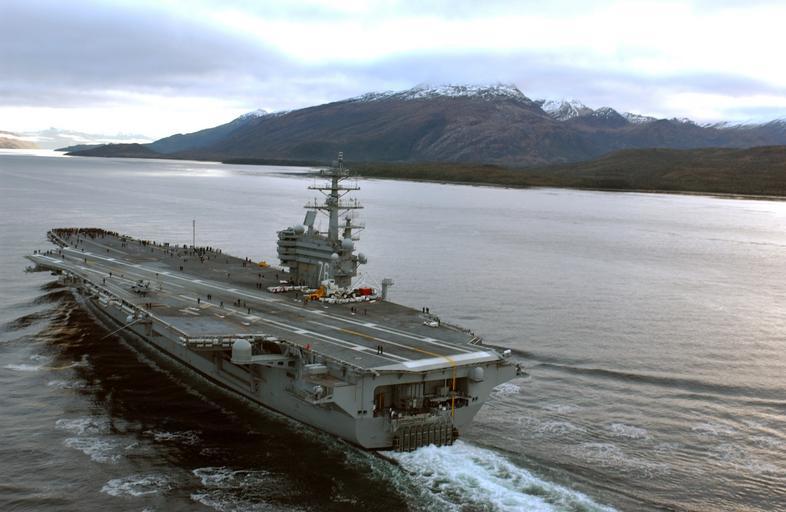 Keywords: US Navy 040621-N-6536T-066 The Nimitz-class aircraft carrier USS Ronald Reagan (CVN 76) cruises through the Straits of Magellan.jpg en Straits of Magellan June 21 2004 - The Nimitz-class aircraft carrier USS Ronald Reagan CVN 76 cruises through the Straits of Magellan on her way to the Pacific Ocean Reagan is underway circumnavigating South America in transit to her new homeport of San Diego Calif while participating in exercises supporting Summer Pulse 2004 Summer Pulse 2004 is the simultaneous deployment of seven aircraft strike groups CSGs demonstrating the ability of the Navy to provide credible combat across the globe in five theaters with other U S allied and coalition military forces Summer Pulse is the Navy s first deployment under its new Fleet Response Plan FRP U S Navy photo by Photographer's Mate 3rd Class Elizabeth Thompson RELEASED For more information go to <a href http //www cffc navy mil/summerpulse04 htm Target _BLANK >www cffc navy mil/summerpulse04 htm</a> 2004-06-21 040621-N-6536T-066 Navy http //www navy mil/view_image asp id 15607 U S Navy photo by Photographer's Mate 3rd Class Elizabeth Thompson PD-USGov-Military-Navy Images from US Navy location Straits of Magellan General views of USS Ronald Reagan CVN-76 135 |