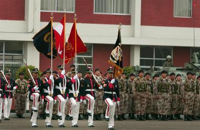 | Keywords: US Navy 040624-N-1464F-006 The Fanning Company Peruvian Marine Drill Team performs during the commencement ceremonies for UNITAS 45-04.jpg en Ancon Marine Base Peru June 24 2004 - The Fanning Company Peruvian Marine Drill Team performs during the commencement ceremonies for UNITAS 45-04 Eleven partner nations including those from the United States and Latin America came together for opening ceremonies The combined effort focusing on peacekeeping and humanitarian assistance operations is one of the largest multilateral exercises in the Southern Hemisphere UNITAS is designed to increase interoperability in traditional amphibious warfare areas U S Navy photo by Photographer's Mate 2nd Class Hueming Mui RELEASED 2004-06-24 040624-N-1464F-006 Navy http //www navy mil/view_image asp id 15418 U S Navy photo by Photographer's Mate 2nd Class Hueming Mui PD-USGov-Military-Navy Images from US Navy location Ancon Marine Base Peru June 2004 in Peru |