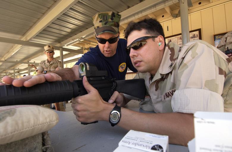 | Keywords: US Navy 040628-N-4142G-001 Lt. Mark Kaes gives Photographer's Mate 2nd Class Brandon Teeples, assigned to Fleet Combat Camera Group Pacific, tips on different shooting techniques.jpg en San Diego Calif June 28 2004 - Lt Mark Kaes gives Photographer's Mate 2nd Class Brandon Teeples assigned to Fleet Combat Camera Group Pacific tips on different shooting techniques with an Alexander Arms 50 caliber Beauwolf assault rifle at the local Rod Gun Club in San Diego Calif Petty Officer Teeples and Mobile Security Squadron Three MSS-3 are testing the armor piercing quality of the rifle for stopping power on military vehicle engine blocks U S Navy photo by Photographer's Mate 1st Class Felix Garza Jr RELEASED 2004-06-28 040628-N-4142G-001 Navy http //www navy mil/view_image asp id 15683 U S Navy photo by Photographer's Mate 1st Class Felix Garza Jr PD-USGov-Military-Navy Naval Base San Diego in the 2000s United States Navy Mobile Security Squadron 3 AR-15 Photographers Mate Photographs by Felix Garza Jr |