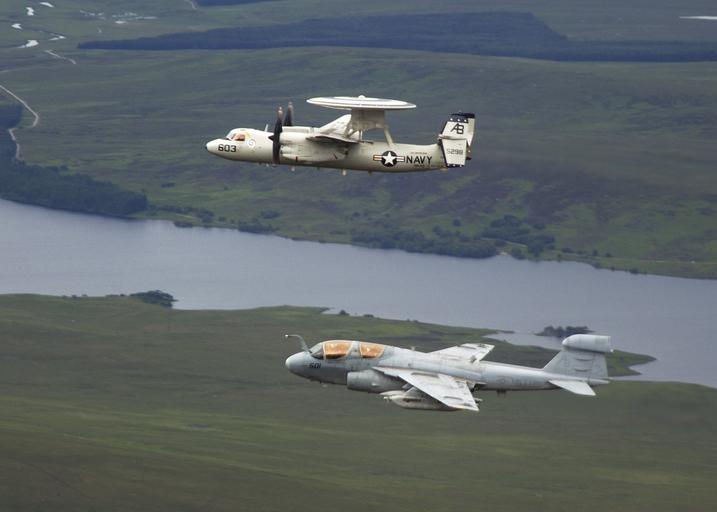 | Keywords: US Navy 040629-N-5405H-060 An EA-6B Prowler assigned to the Rooks of Electronic Attack Squadron One Three Seven VAQ-137 flies in formation with an E-2C Hawkeye assigned to the Screwtops of Carrier Airborne Early Warning Squadro.jpg en Scotland June 29 2004 - An EA-6B Prowler assigned to the Rooks of Electronic Attack Squadron One Three Seven VAQ-137 flies in formation with an E-2C Hawkeye assigned to the Screwtops of Carrier Airborne Early Warning Squadron One Two Three VAW-123 over Scotland The two Squadrons are part of Carrier Air Wing One CVW-1 embarked aboard USS Enterprise CVN 65 Enterprise is one of seven aircraft carriers involved in Summer Pulse 2004 Summer Pulse 2004 is the simultaneous deployment of seven aircraft strike groups CSGs demonstrating the ability of the Navy to provide credible combat across the globe in five theaters with other U S allied and coalition military forces Summer Pulse is the Navy's first deployment under its new Fleet Response Plan FRP U S Navy photo by Photographer's Mate Airman Joshua E Helgeson RELEASED For more information go to <a href http //www cffc navy mil/summerpulse04 htm Target _BLANK >http //www cffc navy mil/summerpulse04 htm</a> 2004-06-29 040629-N-5405H-060 Navy http //www navy mil/view_image asp id 15690 U S Navy photo by Photographer's Mate Airman Joshua E Helgeson PD-USGov-Military-Navy Images from US Navy location SCOTLAND Grumman EA-6 Prowler in flight Ž Northrop Grumman E-2C Hawkeye in flight Airborne Early Warning Squadron 123 United States Navy Electronic Attack Squadron 137 United States Navy |
