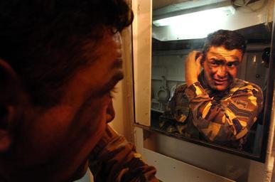 Keywords: US Navy 040704-N-1464F-002 Argentinean Marine 1st Cpl. Christian Cortes applies face paint aboard the Peruvian tank landing ship B.A.P. Callao (DT-143) in preparation for the largest amphibious assault exercise.jpg en Salinas Peru July 4 2004 - Argentinean Marine 1st Cpl Christian Cortes applies face paint aboard the Peruvian tank landing ship B A P Callao DT-143 in preparation for the largest amphibious assault exercise in Latin America during UNITAS 45-04 Eleven partner nations from the U S and Latin America came together for the largest multilateral exercise in the Southern Hemisphere Held since 1959 UNITAS aims to unite military forces throughout the Americas with bilateral and multilateral shipboard amphibious and in-port exercises and operations UNITAS improves operational readiness and interoperability of U S and South American naval coast guard and marine forces while promoting friendship professionalism and understanding among participants U S Navy photo by Chief Journalist Dave Fliesen RELEASED 2004-07-04 040704-N-1464F-002 Navy http //www navy mil/view_image asp id 15765 U S Navy photo by Chief Journalist Dave Fliesen PD-USGov-Military-Navy United States Navy in Salinas Peru Camouflage facepainting |