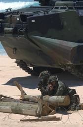Keywords: US Navy 040718-N-5055W-106 U.S. Marines assigned to 3rd Battalion, 3rd Marine Regiment guard their Amphibious Assault Vehicle.jpg en Marine Corps Base Hawaii July 18 2004 - U S Marines assigned to 3rd Battalion 3rd Marine Regiment guard their Amphibious Assault Vehicle AAV following a mechanized raid in support of exercise Rim of the Pacific RIMPAC 2004 RIMPAC is the largest international maritime exercise in the waters around the Hawaiian Islands This year's exercise includes seven participating nations; Australia Canada Chile Japan South Korea the United Kingdom and the United States RIMPAC is intended to enhance the tactical proficiency of participating units in a wide array of combined operations at sea while enhancing stability in the Pacific Rim region U S Navy photo by Photographer's Mate 1st Class Jane West RELEASED For more information go to <a href http //www cpf navy mil/RIMPAC2004 Target _BLANK >http //www cpf navy mil/RIMPAC2004</a>/ http //www navy mil/view_image asp id 16338 Photographer's Mate 1st Class Jane West 2004-07-18 PD-USGov-Military-Navy 3d Bn 3d Mar 2004 RIMPAC Marine Corps Base Hawaii Amphibious Assault Vehicle |