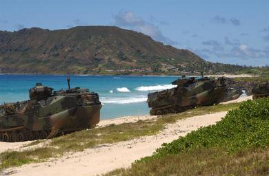 Keywords: US Navy 040718-N-5055W-108 Amphibious Assault Vehicles (AAV) carrying U.S. Marines assigned to the 3rd Battalion, 3rd Marine Regiment hit the beach in support of exercise Rim of the Pacific (RIMPAC) 2004.jpg en Marine Corps Base Hawaii July 18 2004 --Amphibious Assault Vehicles AAV carrying U S Marines assigned to the 3rd Battalion 3rd Marine Regiment hit the beach in support of exercise Rim of the Pacific RIMPAC 2004 RIMPAC is the largest international maritime exercise in the waters around the Hawaiian Islands This year's exercise includes seven participating nations; Australia Canada Chile Japan South Korea the United Kingdom and the United States RIMPAC is intended to enhance the tactical proficiency of participating units in a wide array of combined operations at sea while enhancing stability in the Pacific Rim region U S Navy photo by Photographer's Mate 1st Class Jane West RELEASED For more information go to <a href http //www cpf navy mil/RIMPAC2004 Target _BLANK >http //www cpf navy mil/RIMPAC2004</a>/ http //www navy mil/view_image asp id 16377 Photographer's Mate 1st Class Michelle R Hammond 2004-07-18 PD-USGov-Military-Navy 3d Bn 3d Mar 2004 RIMPAC Marine Corps Base Hawaii Amphibious Assault Vehicle |