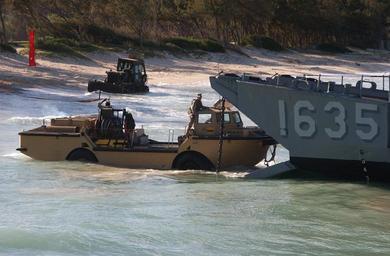 | Keywords: US Navy 040720-N-8500S-051 A Lighter Amphibious Resupply Cargo Vessel (LARC) checks the water level prior to disembarking members of 3rd Battalion, 3rd Marine Regiment, from a Landing Craft Utility (LCU) assigned to the Surf Ri.jpg en Bellows Air Force Base Hawaii July 20 2004 - A Lighter Amphibious Resupply Cargo Vessel LARC checks the water level prior to disembarking members of 3rd Battalion 3rd Marine Regiment from a Landing Craft Utility LCU assigned to the Surf Riders of Assault Craft Unit ONE ACU-1 ACU-1 is attached to the amphibious assault ship USS Tarawa LHA 1 who are all participating in exercise Rim of the Pacific RIMPAC 2004 RIMPAC is the largest international maritime exercise in the waters around the Hawaiian Islands This years exercise includes seven participating nations; Australia Canada Chile Japan South Korea the United Kingdom and the United States RIMPAC is intended to enhance the tactical proficiency of participating units in a wide array of combined operations at sea while enhancing stability in the Pacific Rim region U S Navy photo by Photographer's Mate 3rd Class Paula J Sato RELEASED For more information go to <a href http //www cpf navy mil/RIMPAC2004 Target _BLANK >http //www cpf navy mil/RIMPAC2004</a>/ 2004-07-20 http //www navy mil/view_image asp id 16610 U S Navy photo by Photographer's Mate 3rd Class Paula J Sato PD-USGov-Military-Navy 3d Bn 3d Mar 2004 RIMPAC RIMPAC 2004 LARC-V LCU 1635 ship 1968 |