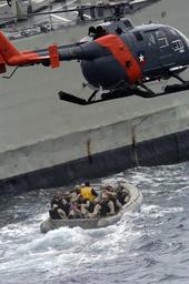 Keywords: US Navy 040720-N-1464F-007 A boarding team from USS Thomas S. Gates (CG 51) rides a Rigid Hull Inflatable Boat (RHIB) as it prepares to conduct a boarding of a foreign amphibious ship during Pacific Phase exercises of UNITAS 4.jpg en Pacific Ocean July 20 2004 - A boarding team from USS Thomas S Gates CG 51 rides a Rigid Hull Inflatable Boat RHIB as it prepares to conduct a boarding of a foreign amphibious ship during Pacific Phase exercises of UNITAS 45-04 A Chilean helicopter flies nearby to observe the boarding operations Naval forces from Argentina Chile Colombia Ecuador Peru and observers from Mexico and Canada are participating in UNITAS 45-04 UNITAS is the premier naval exercise in the region conducted under the direction of Commander U S Naval Forces Southern Command and hosted this year by the Peruvian Navy UNITAS is designed to develop interoperability among the participating navies while increasing readiness and providing the training in a high-tech environment U S Navy photo by Chief Journalist Dave Fliesen RELEASED 2004-07-20 040720-N-1464F-007 Navy http //www navy mil/view_image asp id 16711 U S Navy photo by Chief Journalist Dave Fliesen PD-USGov-Military-Navy USS Thomas S Gates CG-51 |