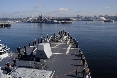 | Keywords: US Navy 041014-N-6477M-319 The crew of the Navy's newest guided missile destroyer USS Momsen (DDG-92), man the rails as the ship draws near their new homeport in Everett, Wash.jpg en Everett Wash Oct 12 2004 - The crew of the Navy's newest guided missile destroyer USS Momsen DDG-92 man the rails as the ship draws near their new homeport in Everett Wash Momsen was built in Bath Maine and was recently commissioned in Panama City Florida The ship and crew joined several other Navy ships for Fleet Week 2004 in San Francisco U S Navy photo by Photographer's Mate 2nd Class Eli J Medellin RELEASED 2004-10-12 041014-N-6477M-319 Navy http //www navy mil/view_image asp id 18233 U S Navy photo by Photographer's Mate 2nd Class Eli J Medellin PD-USGov-Military-Navy Naval Station Everett USS Momsen DDG-92 Manning the rail in the United States Navy October 2004 in the United States Fleet Week San Francisco 2004 |