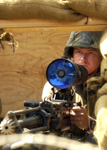 Keywords: US Navy 041029-N-5526M-008 A Seabee assigned to Naval Mobile Construction Battalion One (NMCB-1), keeps watch on the perimeter of his camp during field exercise Operation Gulf Mist.jpg en Camp Shelby Miss Oct 29 2004 A Seabee assigned to Naval Mobile Construction Battalion One NMCB-1 keeps watch on the perimeter of his camp during field exercise Operation Gulf Mist at Camp Shelby Miss NMCB-1 based in Gulfport Miss is completing field training prior to deploying to Iraq U S Navy photo by Photographer's Mate 1st Class Robert R McRill RELEASED 2004-10-29 041029-N-5526M-008 Navy http //www navy mil/view_image asp id 18855 U S Navy photo by Photographer's Mate 1st Class Robert R McRill PD-USGov-Military-Navy Camp Shelby Browning M2 of the US Navy Night vision equipment Operation Gulf Mist Photographs by Robert R McRill |