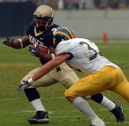 Keywords: US Navy 041030-N-9693M-026 Delaware Blue Hen's defensive back Kyle Campbell tries to block U.S. Naval Academy Midshipman 3rd Class Trey Hines on a rushing attempt in the 2nd quarter of play.jpg en Annapolis Md Oct 30 2004 Delaware Blue Hen's defensive back Kyle Campbell tries to block U S Naval Academy Midshipman 3rd Class Trey Hines on a rushing attempt in the 2nd quarter of play At half-time Navy led the Blue Hens 14-10 at Navy-Marine Corps Memorial Stadium in Annapolis Md U S Navy photo by Damon J Moritz RELEASED 2004-10-30 041030-N-9693M-026 Navy http //www navy mil/view_image asp id 18528 U S Navy photo by Damon J Moritz PD-USGov-Military-Navy U S Naval Academy Midshipmen vs Delaware Blue Hens Oct 30 2004 |
