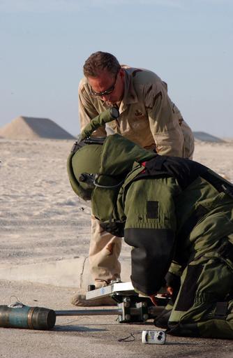 | Keywords: US Navy 041110-N-7469S-002 A Sailor assigned to Explosive Ordnance Disposal Mobile Unit Four (EODMU-4), Detachment Ten, assists another Sailor in rendering an Improvised Explosive Device (IED) safe for disposal.jpg  en 5th Fleet Area of Responsibility Nov 10 2004 - A Sailor assigned to Explosive Ordnance Disposal Mobile Unit Four EODMU-4 Detachment Ten assists another Sailor in rendering an Improvised Explosive Device IED safe for disposal EODMU-4 Det 10 conducted a Final Evaluation Phase of training to simulate operations the team may experience in their area of operation U S Navy photo by Journalist 2nd Class Elton Shaw RELEASED 2004-11-10 041110-N-7469S-002 Navy http //www navy mil/view_image asp id 18867 U S Navy photo by Journalist 2nd Class Elton Shaw PD-USGov-Military-Navy United States Fifth Fleet United States Navy Explosive Ordnance Disposal Bomb suits Explosive Ordnance Disposal Mobile Unit 4 |