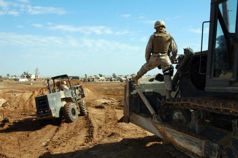 Keywords: US Navy 041113-N-5386H-030 Perched on the blade of a bulldozer, Lt. James Golden, assigned to Naval Mobile Construction Battalion Two Three (NMCB 23), supervises excavation operations at a barrow pit.jpg en Al Anbar Province Iraq Nov 13 2004 Perched on the blade of a bulldozer Lt James Golden assigned to Naval Mobile Construction Battalion Two Three NMCB 23 supervises excavation operations at a barrow pit at Camp Ar Ramadi Iraq The material will fill large sandbag barriers vital to force protection measures for personnel and facilities at Camp Ar Ramadi U S Navy photo by Photographer s Mate 2nd Class Michael D Heckman RELEASED 2004-11-13 041113-N-5386H-030 Navy http //www navy mil/view_image asp id 22189 U S Navy photo by Photographer s Mate 2nd Class Michael D Heckman PD-USGov-Military-Navy Al Anbar Governorate Naval Mobile Construction Battalion 23 |