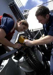 | Keywords: US Navy 041202-N-5837R-231 Fire Controlman 3rd Class Rose Gregory, left, and Fire Controlman 2nd Class Christian Blanco attach the loader assembly to a Close-In Weapons System (CIWS).jpg en Pacific Ocean Dec 2 2004 - Fire Controlman 3rd Class Rose Gregory left and Fire Controlman 2nd Class Christian Blanco attach the loader assembly to a Close-In Weapons System CIWS prior to loading dummy rounds after a live-fire drill aboard the Nimitz-class aircraft carrier USS Abraham Lincoln CVN 72 Lincoln and embarked Carrier Air Wing Two CVW-2 are currently deployed to the Western Pacific Ocean U S Navy photo by Photographer's Mate Airman Apprentice Timothy C Roache Jr RELEASED 2004-12-02 041202-N-5837R-231 Navy http //www navy mil/view_image asp id 19370 U S Navy photo by Photographer's Mate Airman Apprentice Timothy C Roache Jr PD-USGov-Military-Navy Aboard USS Abraham Lincoln CVN-72 Maintenance of Phalanx CIWS Fire Controlman |