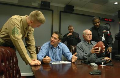 Keywords: US Navy 041208-N-2383B-240 NASCAR Bush Series 2003 Rookie of the Year driver David Stremme and National Football League (NFL) Hall of Fame Quarterback Terry Bradshaw sign autographs during a visit to the Pentagon.jpg en Washington DC Dec 8 2004 - NASCAR Bush Series 2003 Rookie of the Year driver David Stremme and National Football League NFL Hall of Fame Quarterback Terry Bradshaw sign autographs during a visit to the Pentagon The NASCAR team of FitzBradshaw Racing stopped by the Pentagon to sign autographs for the Sailors and Marines and personally thank them for their service to the country U S Navy photo by Chief Photographer's Mate Johnny Bivera RELEASED 2004-12-08 041208-N-2383B-240 Navy http //www navy mil/view_image asp id 19507 U S Navy photo by Chief Photographer's Mate Johnny Bivera PD-USGov-Military-Navy Interior of The Pentagon David Stremme Terry Bradshaw |