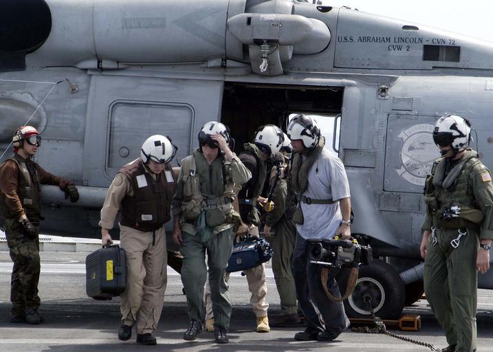| Keywords: US Navy 050103-N-1229B-063 CBS Anchorman Dan Rather and his news crew return to the USS Abraham Lincoln (CVN 72) after touring the island of Sumatra, Indonesia.jpg en Indian Ocean Jan 3 2005 CBS Anchorman Dan Rather and his news crew return to the USS Abraham Lincoln CVN 72 after touring the island of Sumatra Indonesia The Abraham Lincoln Carrier Strike Group is currently operating in the Indian Ocean off the waters of Indonesia and Thailand U S Navy photo by Photographer s Mate Airman Patrick M Bonafede RELEASED 2005-01-03 050103-N-1229B-063 Navy http //www navy mil/view_image asp id 20007 U S Navy photo by Photographer s Mate Airman Patrick M Bonafede PD-USGov-Military-Navy Aboard USS Abraham Lincoln CVN-72 Dan Rather on location assignments |