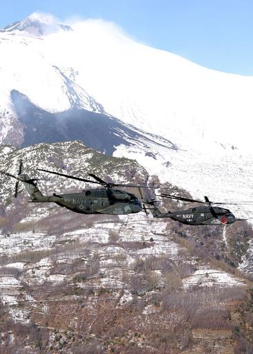 | Keywords: US Navy 050106-N-1550W-001 Two MH-53E Sea Dragon helicopters, assigned to the Black Stallions of Helicopter Combat Support Squadron Four (HC-4), fly in formation in front of Mount Etna.jpg en Mount Etna Sicily Jan 6 2005 - Two MH-53E Sea Dragon helicopters assigned to the Black Stallions of Helicopter Combat Support Squadron Four HC-4 fly in formation in front of Mount Etna the largest active volcano in Europe HC-4 is assigned to Naval Air Station Sigonella Sicily U S Navy photo by Photographer's Mate 2nd Class Elizabeth Williams RELEASED 2005-01-06 050106-N-1550W-001 Navy http //www navy mil/view_image asp id 20598 U S Navy photo by Photographer's Mate 2nd Class Elizabeth Williams PD-USGov-Military-Navy Aerial views of Mount Etna Sikorsky MH-53E Sea Dragon in flight Helicopter Combat Support Squadron 4 United States Navy |