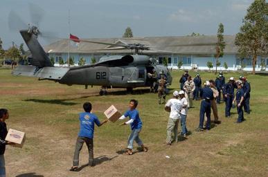 | Keywords: US Navy 050107-N-7586B-127 Sailors from Carrier Air Wing Two (CVW-2) and USS Abraham Lincoln (CVN 72) help distribute food and water along side Indonesian citizens.jpg en Banda Aceh Sumatra Indonesia Jan 7 2005 - Sailors from Carrier Air Wing Two CVW-2 and USS Abraham Lincoln CVN 72 help distribute food and water along side Indonesian citizens at Sultan Iskandar Muda Air Force Base Muda Air Base Helicopters assigned to Carrier Air Wing Two CVW-2 and Sailors from USS Abraham Lincoln CVN 72 are supporting Operation Unified Assistance the humanitarian operation effort in the wake of the Tsunami that struck South East Asia The Abraham Lincoln Carrier Strike Group is currently operating in the Indian Ocean off the waters of Indonesia and Thailand U S Navy photo by Photographer s Mate 1st Class Bart A Bauer RELEASED 2005-01-07 050107-N-7586B-127 Navy http //www navy mil/view_image asp id 20362 U S Navy photo by Photographer s Mate 1st Class Bart A Bauer PD-USGov-Military-Navy Banda Aceh |