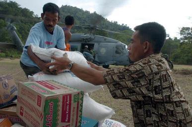 Keywords: US Navy 050107-N-7586B-535 Indonesian citizens and Sailors from USS Abraham Lincoln (CVN 72) unload food and supplies from HH-60H Seahawk helicopter.jpg en Banda Aceh Sumatra Indonesia Jan 7 2005 - Indonesian citizens and Sailors from USS Abraham Lincoln CVN 72 unload food and supplies from HH-60H Seahawk helicopter at the Sultan Iskandar Muda Air Force Base Muda Air Base that will go to disaster stricken areas of Sumatra Indonesia Helicopters assigned to Carrier Air Wing Two CVW-2 and Sailors from USS Abraham Lincoln CVN 72 are supporting Operation Unified Assistance the humanitarian operation effort in the wake of the Tsunami that struck South East Asia The Abraham Lincoln Carrier Strike Group is currently operating in the Indian Ocean off the waters of Indonesia and Thailand U S Navy Photo by Photographer s Mate 1st Class Bart A Bauer RELEASED 2005-01-07 050107-N-7586B-535 Navy http //www navy mil/view_image asp id 20365 U S Navy Photo by Photographer s Mate 1st Class Bart A Bauer PD-USGov-Military-Navy Banda Aceh HH-60H Rescue Hawk |