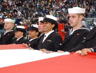 Keywords: US Navy 050116-N-4729H-146 Sailors from Naval Air Station Joint Reserve Base Willow Grove, Pa. hold a giant American flag in a National Football League pregame ceremony in Philadelphia between the Philadelphia Eagles and Minnes.jpg en Philadelphia Pa Jan 16 2005 - Sailors from Naval Air Station Joint Reserve Base Willow Grove Pa hold a giant American flag in a National Football League pregame ceremony in Philadelphia between the Philadelphia Eagles and Minnesota Vikings A total of 125 military men and women displayed the flag after practicing for several hours at the Eagles' practice field The military team had 35 seconds to take their places and roll out the continental U S -shaped flag before the start of the National Anthem The Eagles organization also gave free game tickets to the military members The Eagles downed the Vikings 27-14 and now move on to the NFC Championship game U S Navy photo by Chief Journalist Monica Hallman RELEASED 2005-01-16 050116-N-4729H-146 Navy http //www navy mil/view_image asp id 20762 U S Navy photo by Chief Journalist Monica Hallman PD-USGov-Military-Navy Military in Pennsylvania |