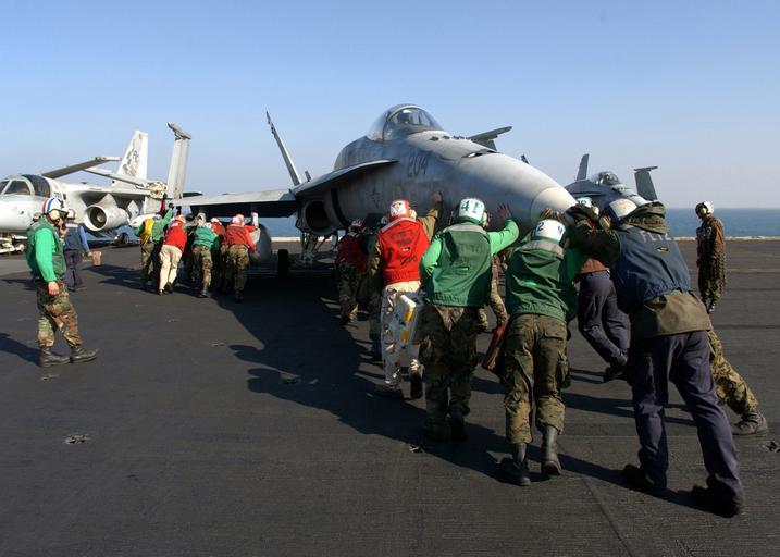 | Keywords: US Navy 050124-N-5345W-006 Flight deck personnel aboard the Nimitz-class aircraft carrier USS Harry S. Truman (CVN 75) conducts a push back of F-A-18A- Hornet.jpg en Persian Gulf Jan 24 2005 Flight deck personnel aboard the Nimitz-class aircraft carrier USS Harry S Truman CVN 75 conducts a push back of F/A-18A+ Hornet assigned to the Silver Eagles of Marine Strike Fighter Attack Squadron One One Five VMFA-115 Carrier Air Wing Three CVW-3 is embarked aboard Harry S Truman and is providing close air support and conducting intelligence surveillance and reconnaissance missions over Iraq The Truman Carrier Strike Group and CVW-3 are on a regularly scheduled deployment in support of the Global War on Terrorism U S Navy photo by Photographer's Mate Airman Kristopher Wilson RELEASED 2005-01-24 050124-N-5345W-006 Navy http //www navy mil/view_image asp id 21274 U S Navy photo by Photographer's Mate Airman Kristopher Wilson PD-USGov-Military-Navy Aboard USS Harry S Truman CVN-75 |