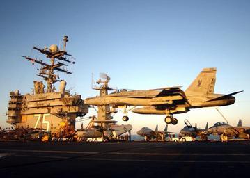 Keywords: US Navy 050127-N-4308O-115 An F-A-18A- Hornet assigned to the Silver Eagles of Marine Strike Fighter Attack Squadron One One Five (VMFA-115) prepares to make an arrested landing.jpg en Persian Gulf Jan 27 2005 - An F/A-18A+ Hornet assigned to the Silver Eagles of Marine Strike Fighter Attack Squadron One One Five VMFA-115 prepares to make an arrested landing on the flight deck of the Nimitz-class aircraft carrier USS Harry S Truman CVN 75 Carrier Air Wing Three CVW-3 is embarked aboard Harry S Truman and is providing close air support and conducting intelligence surveillance and reconnaissance missions over Iraq The Truman Carrier Strike Group and CVW-3 are on a regularly scheduled deployment in support of the Global War on Terrorism U S Navy photo by Photographer s Mate Airman Ryan O'Connor RELEASED 2005-01-27 050127-N-4308O-115 Navy http //www navy mil/view_image asp id 21291 U S Navy photo by Photographer s Mate Airman Ryan O'Connor PD-USGov-Military-Navy F/A-18A Hornet on flight decks Aboard USS Harry S Truman CVN-75 F/A-18 Hornet aircraft carrier landings