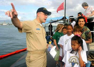 Keywords: US Navy 050214-N-5539C-001 Lt.j.g. Scott Washburn gives a tour of the Los Angeles-class attack submarine USS Louisville (SSN 724) to 25 Punahou Elementary School third graders on board Naval Station Pearl Harbor, Hawaii.jpg USS Louisville SSN 724 to 25 Punahou Elementary School third graders on board Naval Station Pearl Harbor Hawaii The children were shown berthing spaces the ship's galley the torpedo room and the control room The children were also treated to chocolate chip cookies in the galley and were able to peek through the periscopes in the control room Louisville was commissioned on Nov 8 1986 and is the 35th Los Angeles-class attach submarine U S Navy photo by Journalist 2nd Class Corwin Colbert RELEASED 2005-02-14 050214-N-5539C-001 Navy http //www navy mil/view_image asp id 21889 U S Navy photo by Journalist 2nd Class Corwin Colbert PD-USGov-Military-Navy People at Pearl Harbor Images from US Navy location Pearl Harbor Hawaii 2005 in Pearl Harbor USS Louisville SSN-724 Punahou School Students in Hawaii 2005 in Hawaii Guided tours |