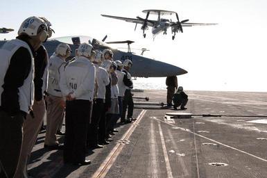 | Keywords: US Navy 050214-N-6490U-247 Members of the Japanese Maritime Self Defense Force (JMSDF) watch as an E-2C Hawkeye as it approaches for a landing on the flight deck aboard USS Kitty Hawk (CV 63).jpg en Pacific Ocean Feb 14 2005 - Members of the Japanese Maritime Self Defense Force JMSDF watch as an E-2C Hawkeye assigned to the Liberty Bells of Carrier Airborne Early Warning Squadron One One Five VAW-115 as it approaches for a landing on the flight deck aboard USS Kitty Hawk CV 63 Tours of Kitty Hawk are conducted to raise awareness of 7th Fleet missions and the importance of forward-deployed naval forces Kitty Hawk demonstrates power projection and sea control as the U S Navy's only forward-deployed aircraft carrier operating from Yokosuka Japan U S Navy photo by Photographer's Mate 3rd Class Tommy Umholtz RELEASED 2005-02-14 050214-N-6490U-247 Navy http //www navy mil/view_image asp id 21954 U S Navy photo by Photographer's Mate 3rd Class Tommy Umholtz PD-USGov-Military-Navy Aboard USS Kitty Hawk CV-63 Northrop Grumman E-2C Hawkeye aircraft carrier landings Airborne Early Warning Squadron 115 United States Navy |