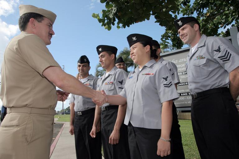 Keywords: US Navy 050225-N-3228G-001 Master Chief Petty Officer of the Navy (MCPON) Terry Scott meets several Task Force Uniform volunteers.jpg en Pearl Harbor Hawaii Feb 25 2005 - Master Chief Petty Officer of the Navy MCPON Terry Scott meets several Task Force Uniform volunteers at the Personnel Support Detachment on board Naval Station Pearl Harbor Hawaii to find out what they think about the new test uniforms Approximately 120 Sailors at Pearl Harbor Hawaii will evaluate the new uniforms for a six-month test period The service blue uniform will be worn year-round and will take the place of the summer white and winter blue uniforms Dress uniforms such as Cracker Jacks will not be affected by this wear test Each uniform offers options for Sailors to choose from and give feedback to Task Force Uniform MCPON Scott was in Hawaii to attend the Commander U S Pacific Command change of command and toured several commands around Pearl Harbor U S Navy photo by Photographer s Mate 1st Class William R Goodwin RELEASED 2005-02-25 050225-N-3228G-001 Navy http //www navy mil/view_image asp id 22301 U S Navy photo by Photographer s Mate 1st Class William R Goodwin PD-USGov-Military-Navy People at Pearl Harbor Images from US Navy location Pearl Harbor Hawaii 2005 in Pearl Harbor Terry D Scott Handshakes involving the military Change of command Photographs by William R Goodwin |
