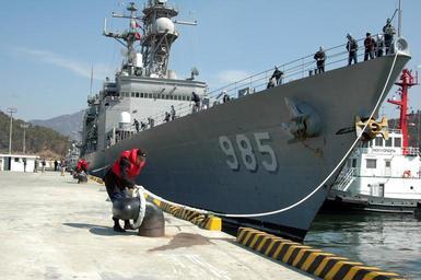 | Keywords: US Navy 050321-N-9588P-002 Sailors prepare to remove lines in preparation to getting the Spruance-class destroyer USS Cushing (DD 985) underway during Reception, Staging, Onward movement, and Integration-Foal Eagle exercises (.jpg en Chinae Republic of Korea Mar 21 2005 Sailors prepare to remove lines in preparation to getting the Spruance-class destroyer USS Cushing DD 985 underway during Reception Staging Onward movement and Integration/Foal Eagle exercises RSO I/Foal Eagle RSO I is a complex multi-phase exercise conducted annually tailored to train test and demonstrate United States and Republic of Korea force projection and deployment capabilities Foal Eagle exercise runs simultaneously and trains in all aspects of Combined Forces Command's mission The defensive Naval Foal Eagle exercises began Mar 19 2005 with eight U S Navy ships from the USS Kitty Hawk CV 63 Carrier Strike Group U S Navy photo by Scott Morton RELEASED 2005-03-21 050321-N-9588P-002 Navy http //www navy mil/view_image asp id 22922 U S Navy photo by Scott Morton PD-USGov-Military-Navy Images from US Navy location Jinhae South Korea USS Cushing DD-985 Ships with pennant number 985 Foal Eagle 2005 Taken with Nikon D70 |