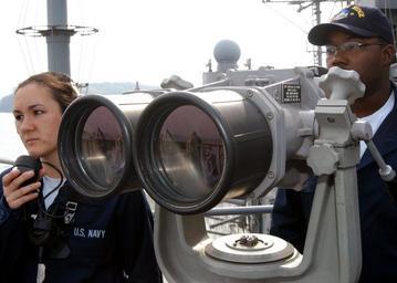 Keywords: US Navy 050419-N-7526R-060 Cryptologic Technician 1st Class Jasen Williams, right, mans the Big Eyes binoculars as Operations Specialist Seaman Stephani Wood stands by, waiting to pass along any instructions as USS Blue Ridge (.jpg en Tokyo-wan April 19 2005 - Cryptologic Technician 1st Class Jasen Williams right mans the Big Eyes binoculars as Operations Specialist Seaman Stephani Wood stands by waiting to pass along any instructions as USS Blue Ridge LCC 19 gets underway Blue Ridge recently completed Final Evaluation Problem FEP FEP is designed to demonstrate the ship's ability to conduct multiple simultaneous combat missions support functions and service complex casualty control simulations under stressful conditions Blue Ridge is the U S Seventh Fleet command ship U S Navy photo by Journalist Seaman Apprentice Marc Rockwell-Pate RELEASED 2005-04-19 050419-N-7526R-060 Navy http //www navy mil/view_image asp id 23804 U S Navy photo by Journalist Seaman Apprentice Marc Rockwell-Pate PD-USGov-Military-Navy Images from US Navy location Tokyo Bay Japan Cryptologic Technician Aboard USS Blue Ridge LCC-19 |