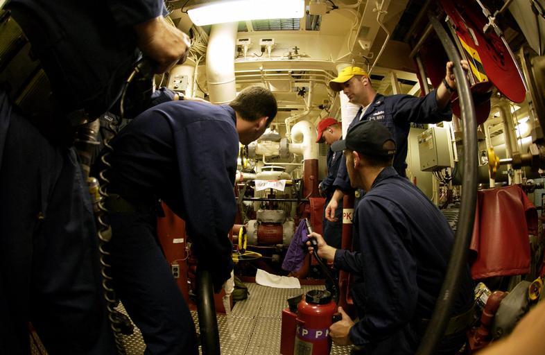 Keywords: US Navy 050425-N-4309A-032 Engineering Department personnel assigned the guided missile destroyer USS O'Kane (DDG 77) use PKP (Potassium Bicarbonate Powder) and AFFF (Aqueous Film Forming Foam) to battle simulated fires in the.jpg en Horn of Africa April 25 2005 - Engineering Department personnel assigned the guided missile destroyer USS O'Kane DDG 77 use PKP Potassium Bicarbonate Powder and AFFF Aqueous Film Forming Foam to battle simulated fires in the ship s Engineering spaces O'Kane is currently conducting Maritime Security Operations MSO off the Horn of Africa U S Navy photo by Photographer's Mate 1st Class Aaron Ansarov RELEASED 2005-04-25 050425-N-4309A-032 Navy http //www navy mil/view_image asp id 23953 U S Navy photo by Photographer's Mate 1st Class Aaron Ansarov PD-USGov-Military-Navy Aboard USS O'Kane DDG-77 Aqueous Film Forming Foam |