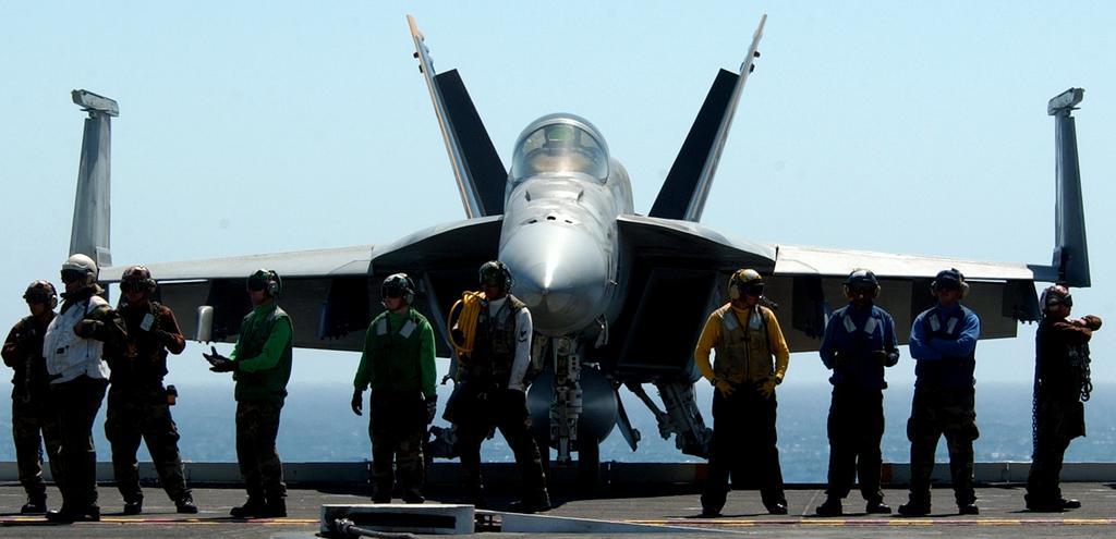 | Keywords: US Navy 050512-N-7130B-117 Flight deck personnel stand in front of a parked F-A-18E Super Hornet, look- on as flight operations commence.jpg en Pacific Ocean May 12 2005 Flight deck personnel stand in front of a parked F/A-18E Super Hornet look- on as flight operations commence on the flight deck aboard the Nimitz class aircraft carrier USS Ronald Reagan CVN 76 Reagan is currently underway conducting routine carrier operations U S Navy photo by Photographer's Mate 3rd Class Aaron Burden RELEASED 2005-05-12 050512-N-7130B-117 Navy http //www navy mil/view_image asp id 24306 U S Navy photo by Photographer's Mate 3rd Class Aaron Burden PD-USGov-Military-Navy Flight deck of USS Ronald Reagan CVN-76 F/A-18E Super Hornet on flight decks |