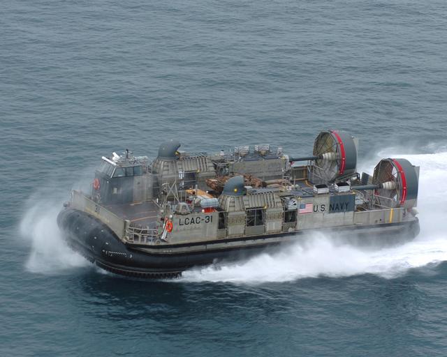 Keywords: US Navy 050616-N-8146B-004 A Landing Craft Air Cushion, (LCAC) assigned to Assault Craft Unit Five (ACU-5) transports a Leopard AS1 Main Battle Tank.jpg en Shoalwater Bay June 16 2005 - A Landing Craft Air Cushion LCAC assigned to Assault Craft Unit Five ACU-5 transports a Leopard AS1 Main Battle Tank from the well deck aboard the amphibious assault ship USS Boxer LHD 4 in support of exercise Talisman Sabre 2005 Talisman Sabre is an exercise jointly sponsored by the U S Pacific Command and Australian Defense Force Joint Operations Command and designed to train the U S 7th Fleet commander's staff and Australian Joint Operations staff as a designated Combined Task Force CTF headquarters The exercise focuses on crisis action planning and execution of contingency response operations U S Pacific Command units and Australian forces will conduct land sea and air training throughout the training area More than 11 000 U S and 6 000 Australian personnel will participate U S Navy photo by Photographer's Mate 3rd Class James Bartels RELEASED 2005-06-16 050616-N-8146B-004 Navy http //www navy mil/view_image asp id 25417 U S Navy photo by Photographer's Mate 3rd Class James Bartels PD-USGov-Military-Navy Shoalwater Bay LCAC-31 ship 1991 Assault Craft Unit 5 Talisman Sabre 2005 Watercraft in motion |