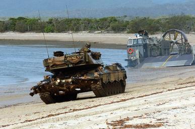 Keywords: US Navy 050619-N-6811L-216 An Australian Army Leopard AS1 main battle tank moves up the beach at Sabina Point after being transported ashore by a U.S. Navy Landing Craft, Air Cushion (LCAC).jpg en Queensland Australia June 19 2005 - An Australian Army Leopard AS1 main battle tank moves up the beach at Sabina Point after being transported ashore by a U S Navy Landing Craft Air Cushion LCAC assigned to Assault Craft Unit Five ACU-5 during exercise Talisman Sabre 2005 Talisman Sabre is an exercise jointly sponsored by the U S Pacific Command and Australian Defense Force Joint Operations Command and designed to train the U S Seventh Fleet commander's staff and Australian Joint Operations staff as a designated Combined Task Force CTF headquarters The exercise focuses on crisis action planning and execution of contingency response operations U S Pacific Command units and Australian forces will conduct land sea and air training throughout the training area More than 11 000 U S and 6 000 Australian personnel will participate U S Navy photo by Photographer's Mate 1st Class David A Levy RELEASED 2005-06-19 050619-N-6811L-216 Navy http //www navy mil/view_image asp id 25459 U S Navy photo by Photographer's Mate 1st Class David A Levy PD-USGov-Military-Navy Images from US Navy location Queensland Australia Beaches of Queensland Talisman Sabre 2005 Leopard 1 in Australian service Landing Craft Air Cushion |