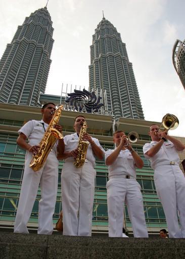 Keywords: US Navy 050622-N-0000V-001 Members of the Pacific Fleet Band play for an audience near the Petronas Towers in Kuala Lumpur, Malaysia.jpg en Kuala Lumpur Malaysia June 22 2005 Members of the Pacific Fleet Band play for an audience near the Petronas Towers in Kuala Lumpur Malaysia as part of a 12-day tour in Malaysia The tour is in celebration of friendship between the United States and Malaysia U S Navy photo by Musician 2nd Class Richard Varela RELEASED 2005-06-22 050622-N-0000V-001 Navy http //www navy mil/view_image asp id 25530 U S Navy photo by Musician 2nd Class Richard Varela PD-USGov-Military-Navy Images from US Navy location Kuala Lumpur Malaysia