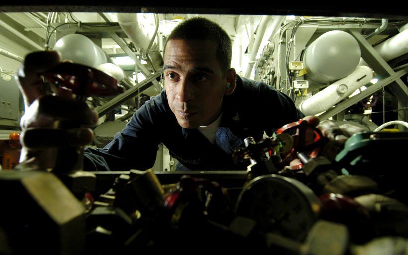 Keywords: US Navy 050622-N-1397H-022 Machinist Mate 3rd Class Javier Rodriguez from San Juan, Puerto Rico, searches the A-division shelves for a globe valve to replace another in the ships chill water system.jpg en Pacific Ocean June 22 2005 - Machinist Mate 3rd Class Javier Rodriguez from San Juan Puerto Rico searches the A-division shelves for a globe valve to replace another in the ships chill water system aboard the amphibious assault ship USS Peleliu LHA 5 U S Navy photo by Photographer's Mate 2nd Class Prince A Hughes III RELEASED 2005-06-22 050622-N-1397H-022 Navy http //www navy mil/view_image asp id 25597 U S Navy photo by Photographer's Mate 2nd Class Prince A Hughes III PD-USGov-Military-Navy Aboard USS Peleliu LHA-5 |
